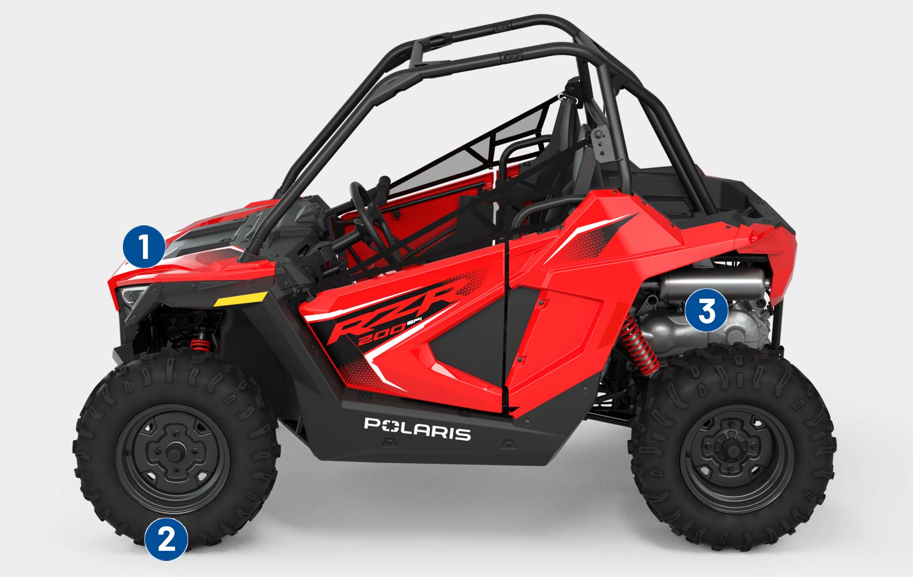 The RZR 200 EFI comes equipped Helmet Aware Sensor. Using the Ride Command App, parents can pre-set vehicle controls so that the vehicle won’t start when the beacon is out of the vehicle gauge range, ensuring that fun is always paired with a helmet.